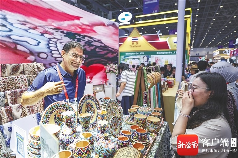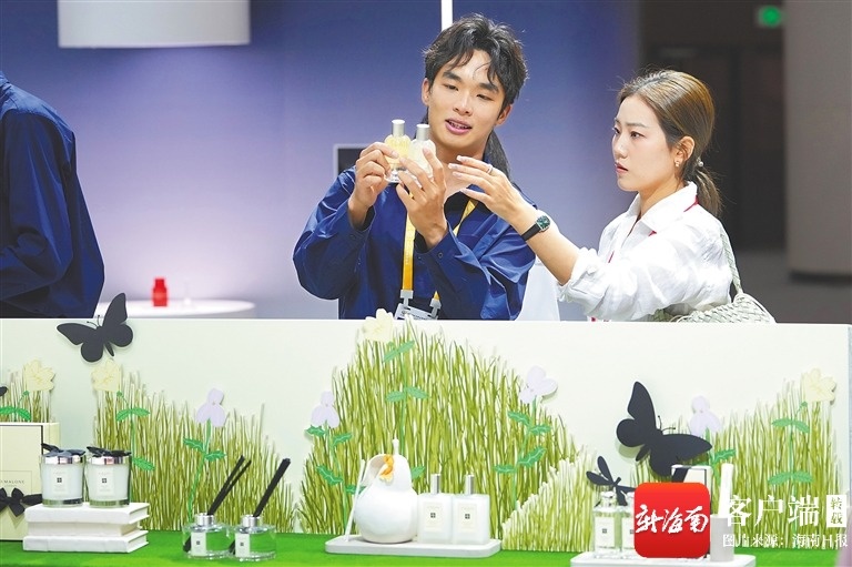 逛到海南本地展台前,张女士挑了两盒胡椒礼盒、一罐沉香茶,“外地朋友总让我带海南特产,今天一次性买齐!”