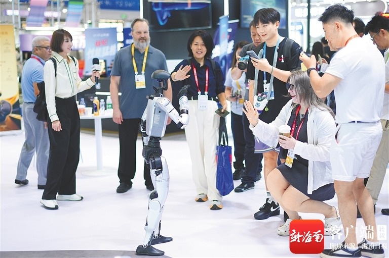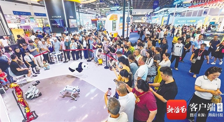 看全球首台陆空两栖分体式飞行汽车、用机器人问诊、试戴AI眼镜、品尝各国美食……海南日报全媒体记者在展馆内看到,观众们在各自感兴趣的展厅前驻足体验,开馆不到1小时,一些展厅已经排起了长队,有的队伍甚至已经把展厅围住了一半。问询声、解答声此起彼伏,观众之间互相“种草”的声音也不绝于耳。