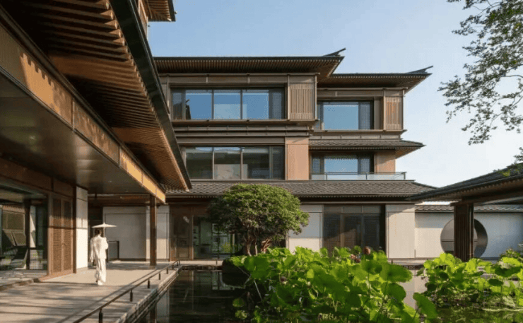 因此,当面对保亿湘湖六庄每栋6065㎡-6676㎡不等的规划要求时,青墨建筑设计与业主保亿集团所希望看到的,除了项目能够以亿级“官邸大宅”的形态出现外,又叠加了在杭州山水文化与湘湖自然风景互构的基底上,塑造一个适应当代生活需求的“私家园囿”期许,从而使江南山水意象以园林形式从一种审美追求转移至物质可寻的状态。