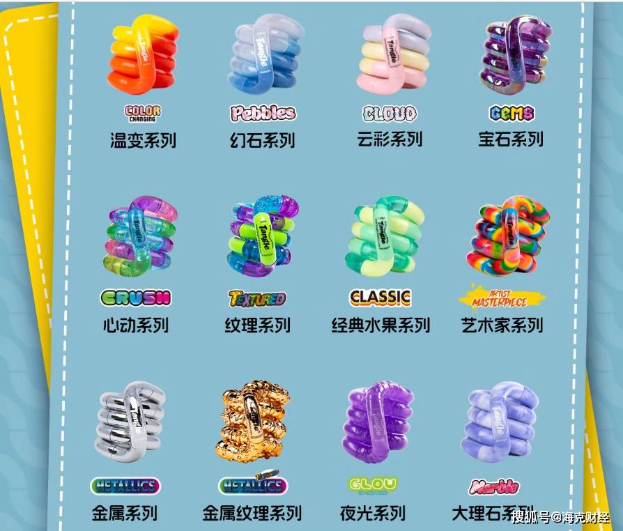 已有公司通过将情感抚慰功能产品化,开辟出了潮玩IP新品类。Tangle即是一例。Tangle来自美国,也叫扭扭乐,它由一节节不同颜色的塑胶组成,可拆开重装,能任意搓扭出不同形状,可通过手部动作提升注意力、缓解焦虑。Tangle已于2025年3月登陆国内市场,产品单价普遍在43-99元,在国内主流电商平台销量颇为火爆。