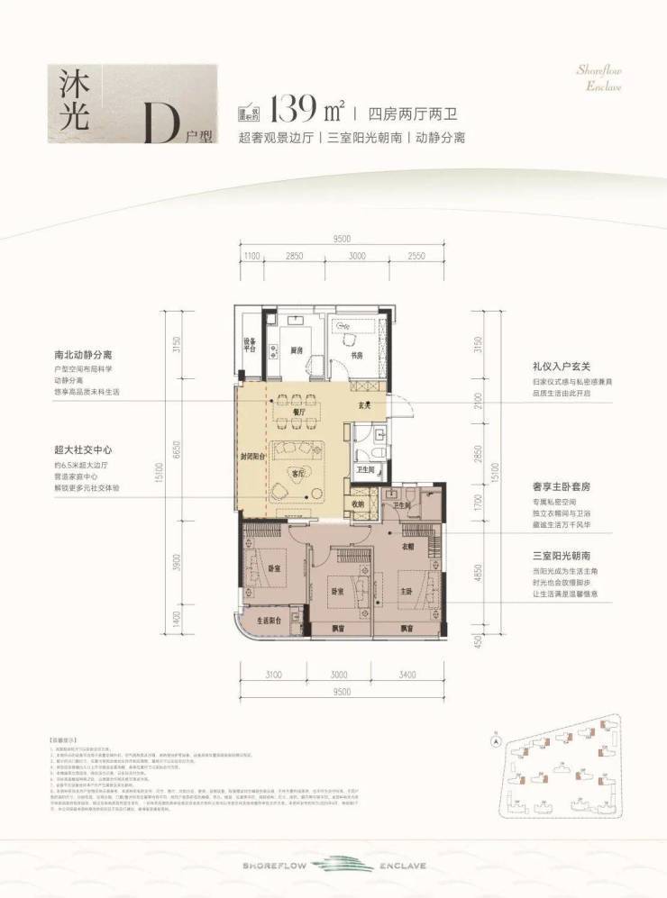 总价:约340万-528万/套,其中120㎡户型390万起、139㎡户型462万起(均送车位)