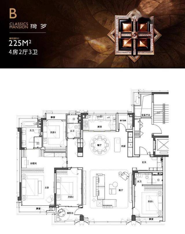 功能布局:四房两厅三卫的设计,满足多代同堂的居住需求。双套房设计,主卧开间约4.2米,并配备270°全景舱,提供了极 致的居住体验。