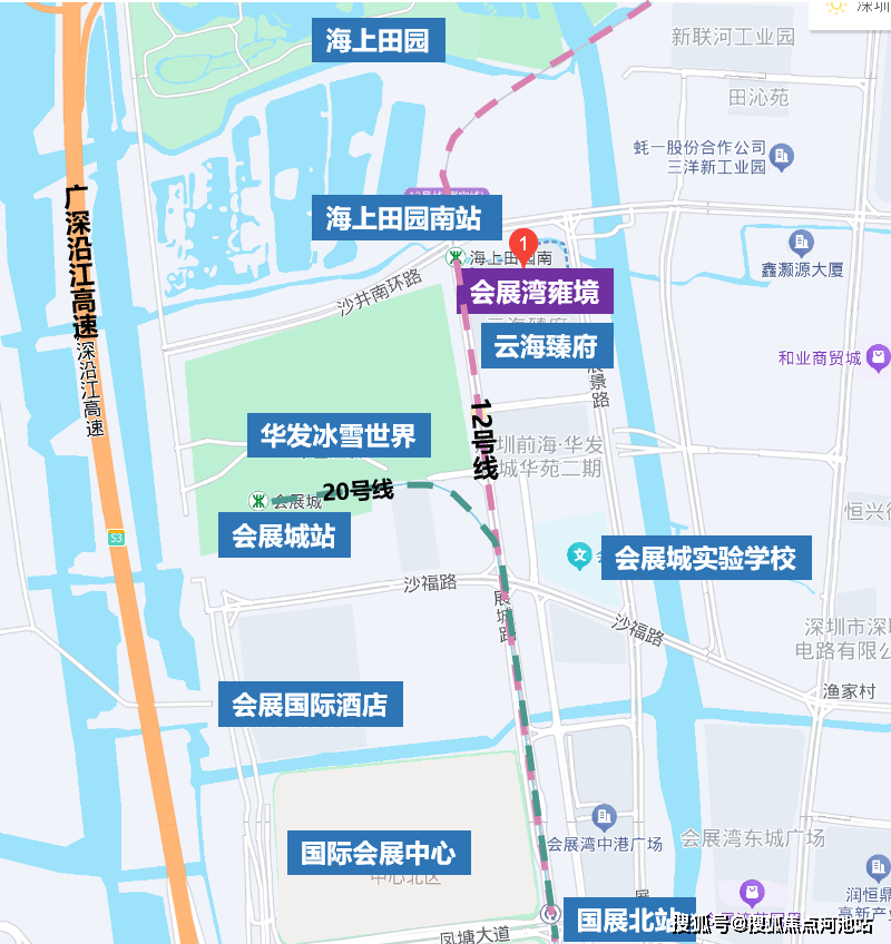 项目出门就是12号地铁线“海上田园南站”,步行约500米国展北站(12/20号线号线号线是机场快线,目前一期已通车,会展城站—机场北;二期已经纳入深圳地铁五期规划,预计28年通车,14站到高新园。